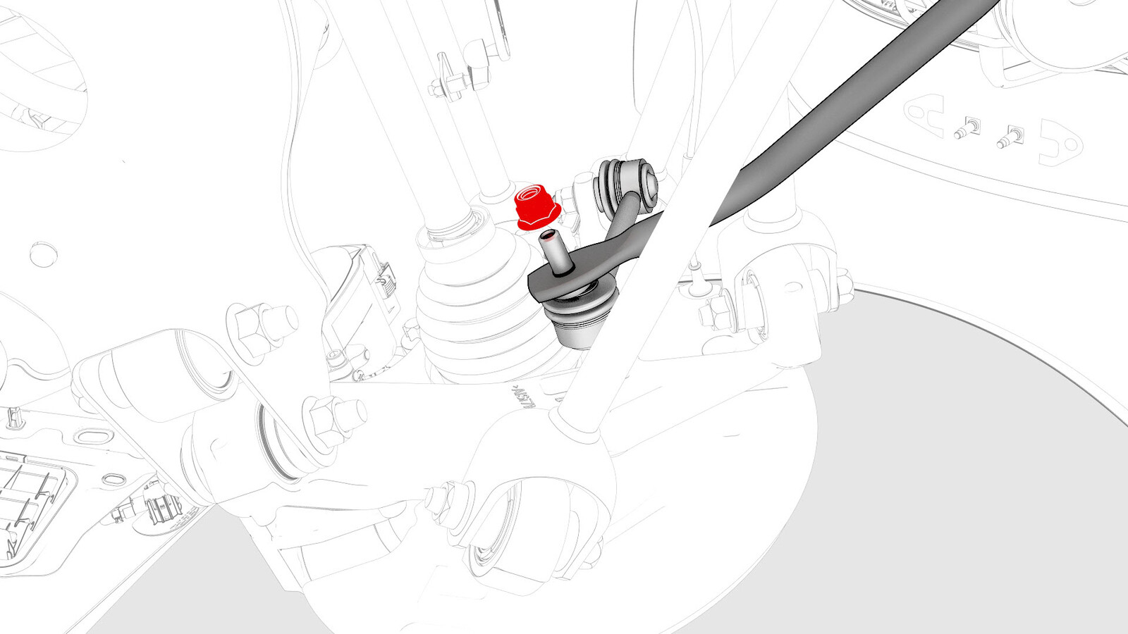 NoteBreak the nut loose, and then counter-hold the ball joint with a 5 mm hex wrench.