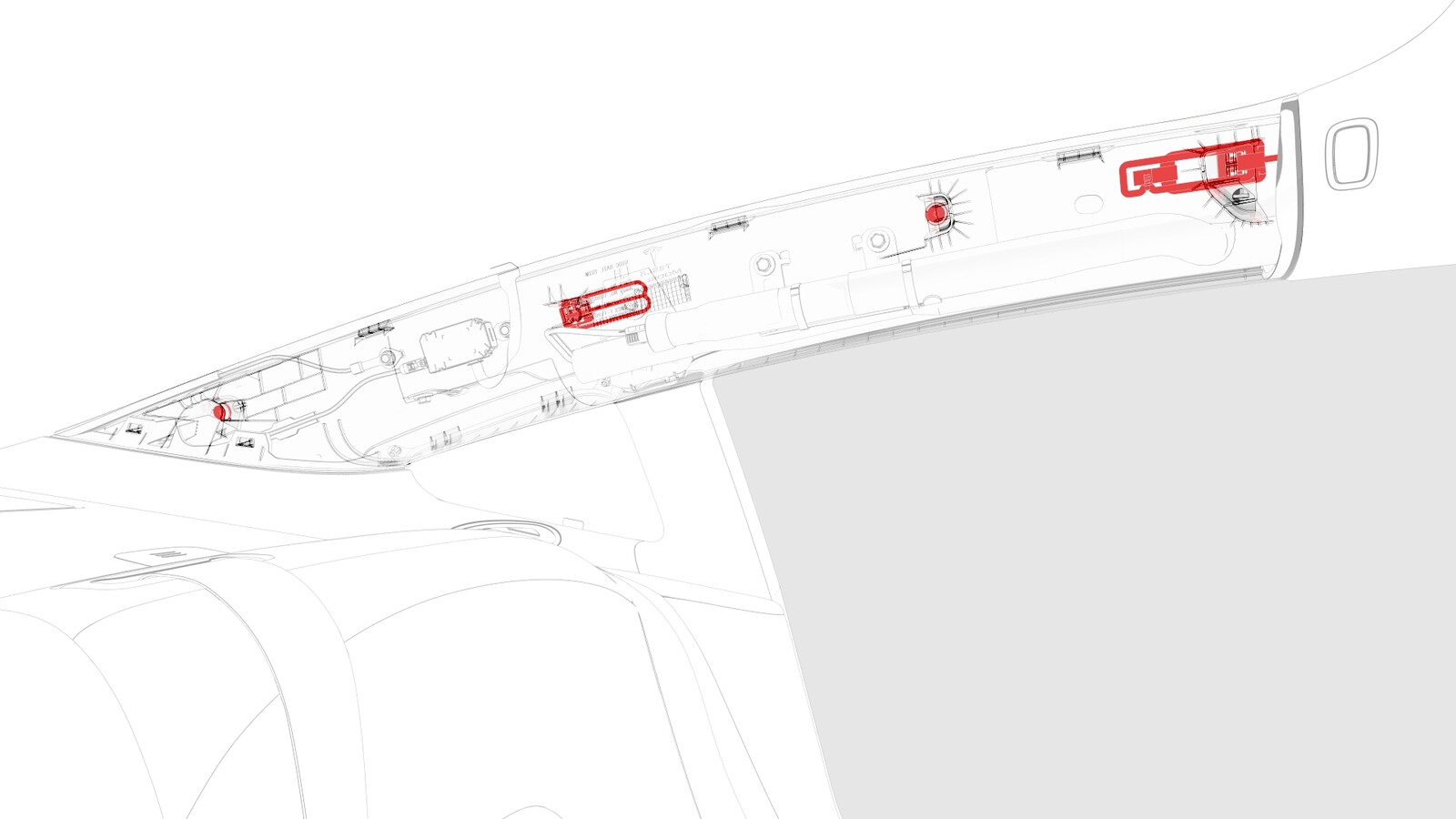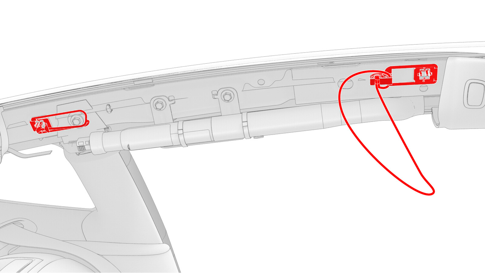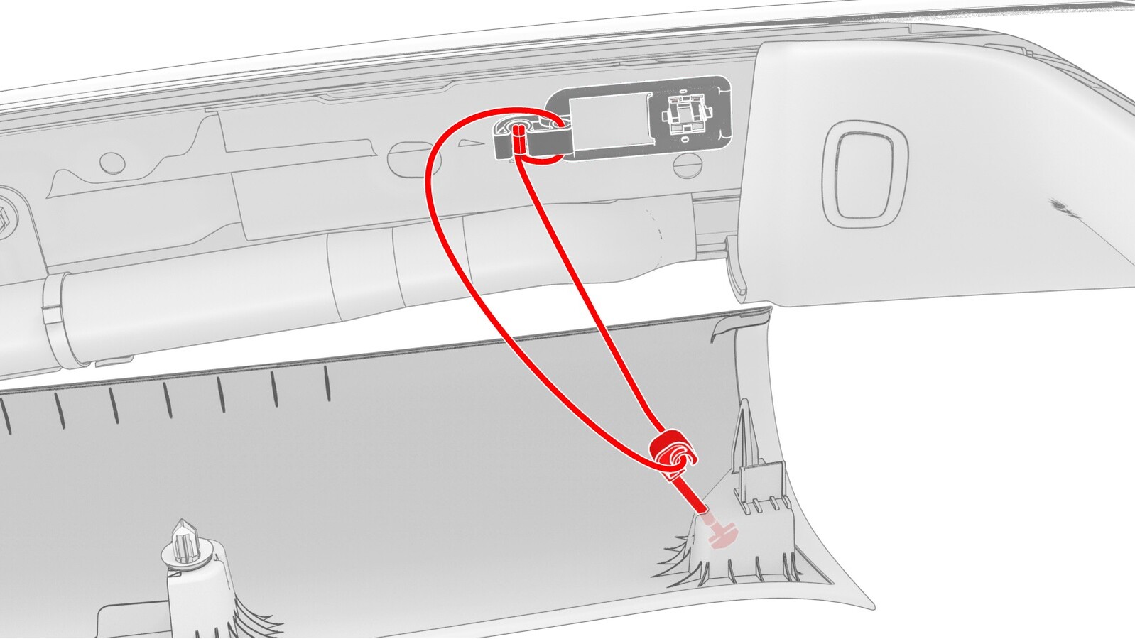 - Hook the LH side rail trim tethers (x2) on the LH side rail trim, and then position the side rail trim on the side rail.