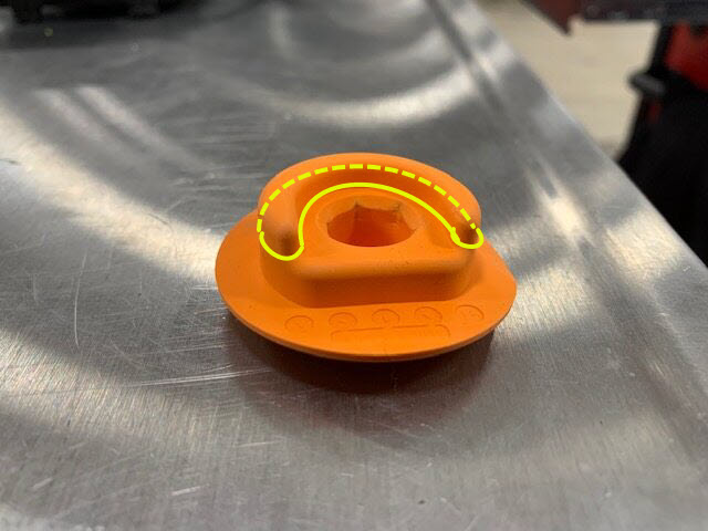 - Use diagonal cutters to remove the lip from the underside of a bolt head insulator.