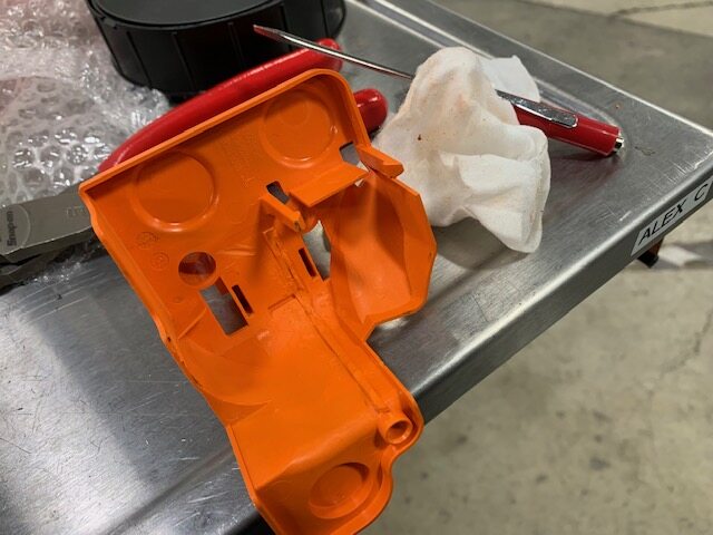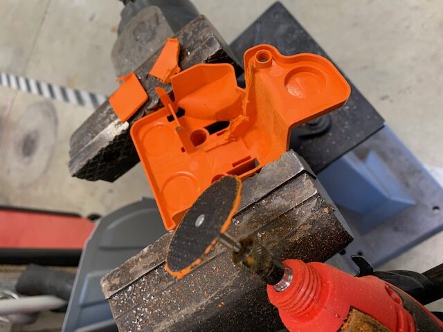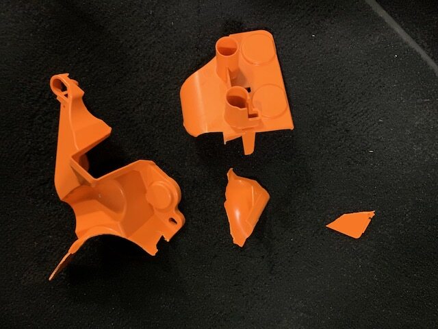 CAUTIONBe careful not to stress or damage the power cover system coolant output tube.NoteIt may be necessary to make a second break so that the larger pieces can be removed.