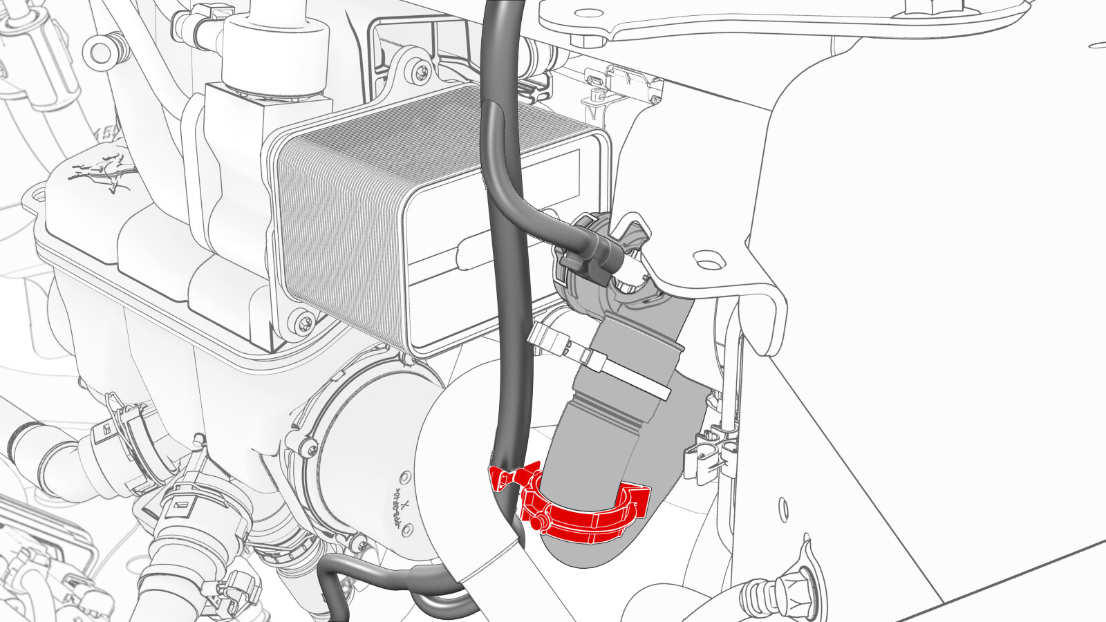 - Connect the thermal beam electrical harness to the powertrain coolant pump connector.