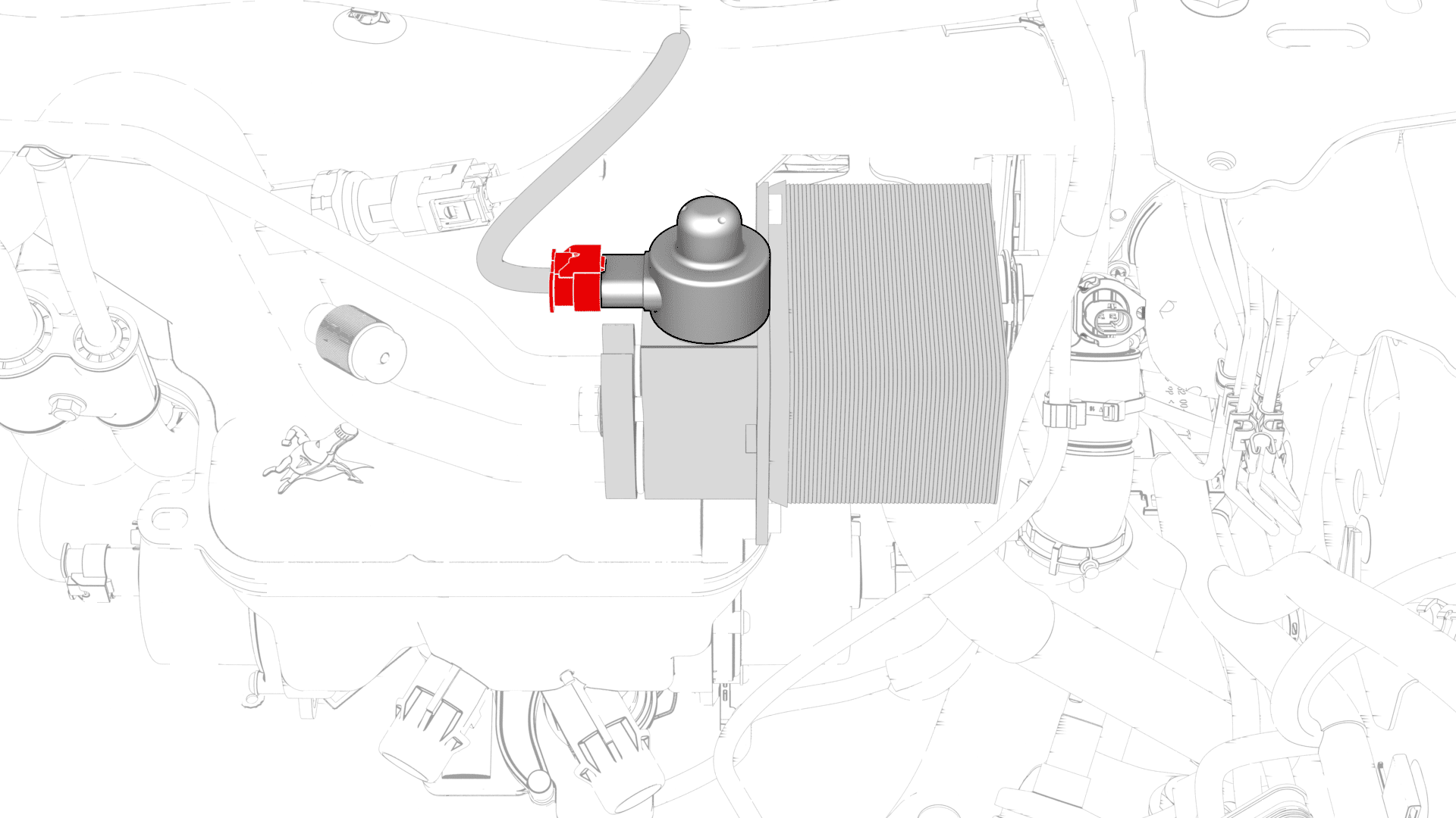 - Fasten the clips that attach the thermal beam electrical harness to the compressor and compressor bracket.