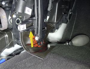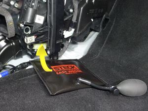 - Insert the inflatable air bag up to the bottom of the lower mode actuator, then inflate it between the RH cross car beam bracket and lower HVAC assembly.