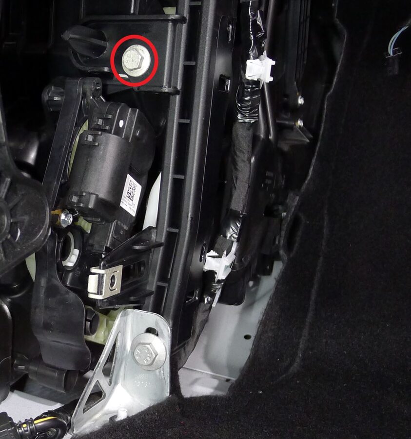 - Hand-tighten bolt that attaches cross car beam to the HVAC assembly.