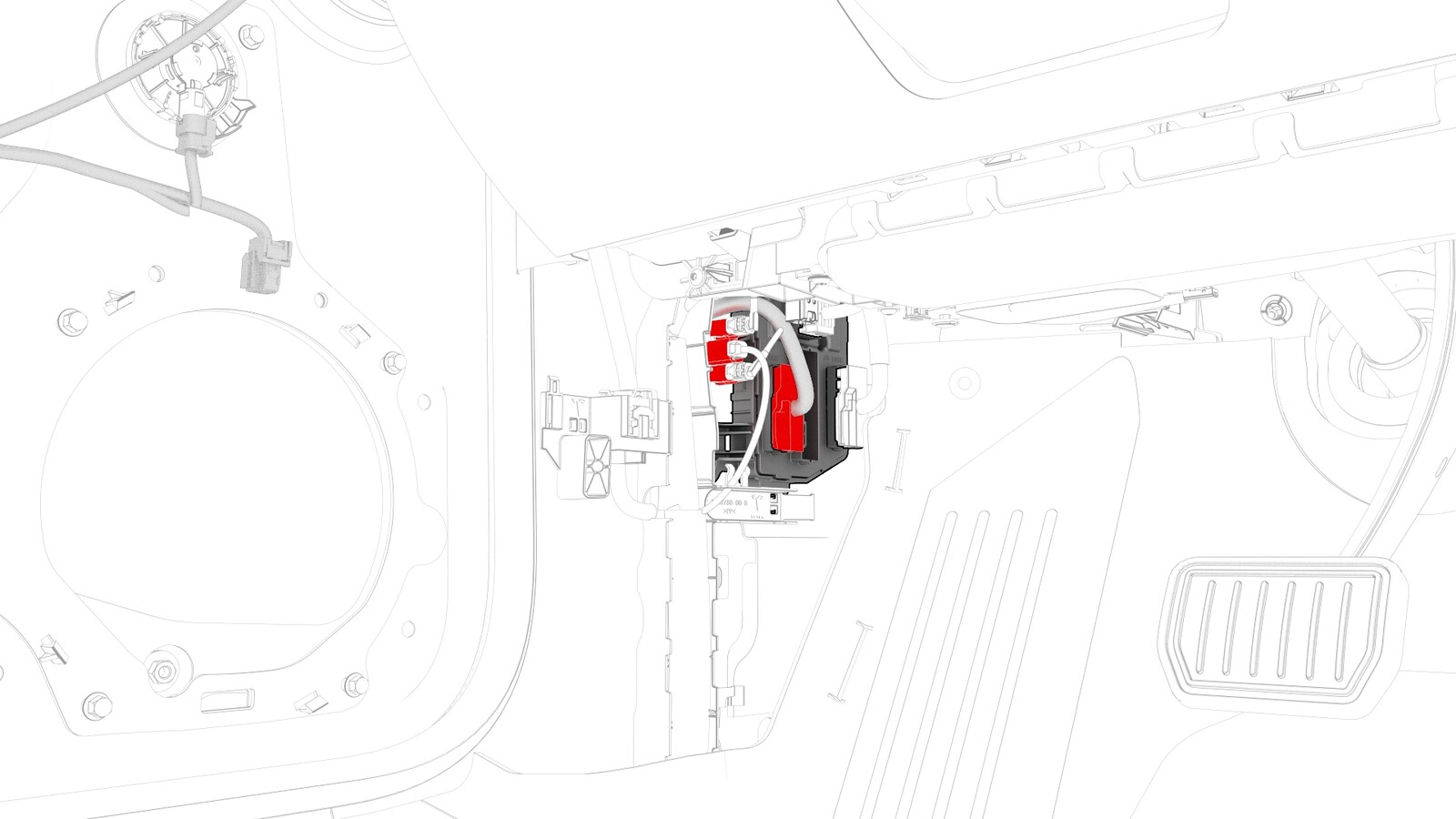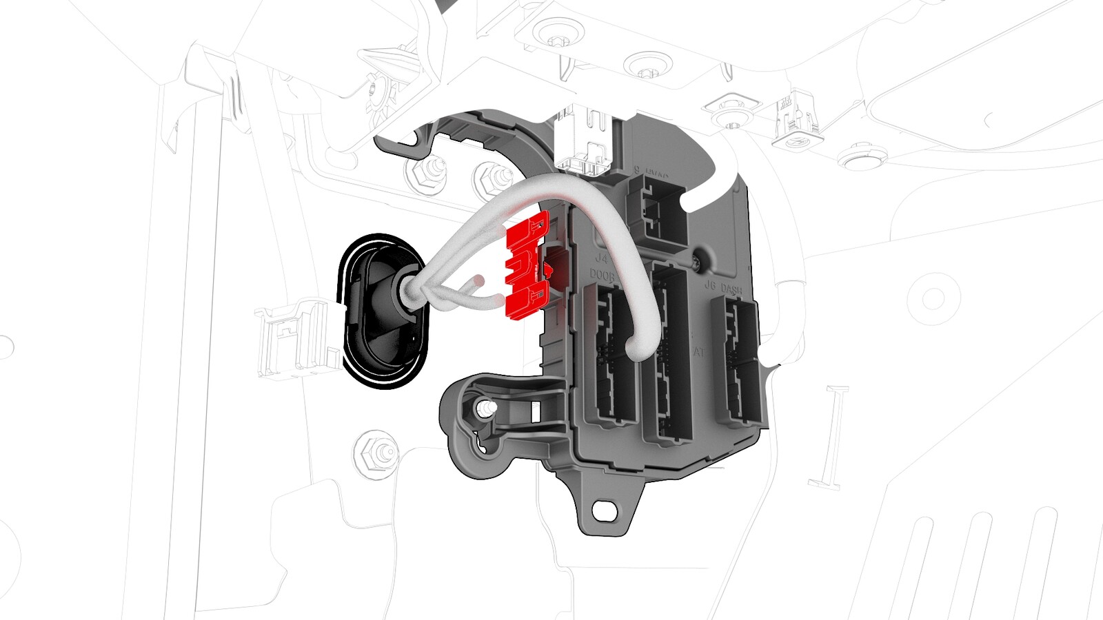 - Release the wiring harness clip from the LH body controller module.