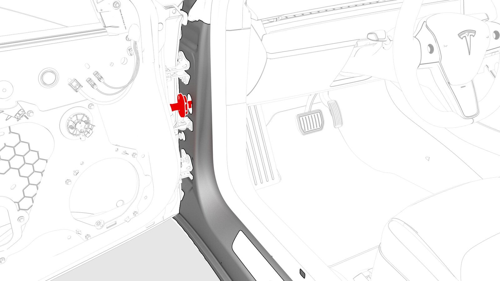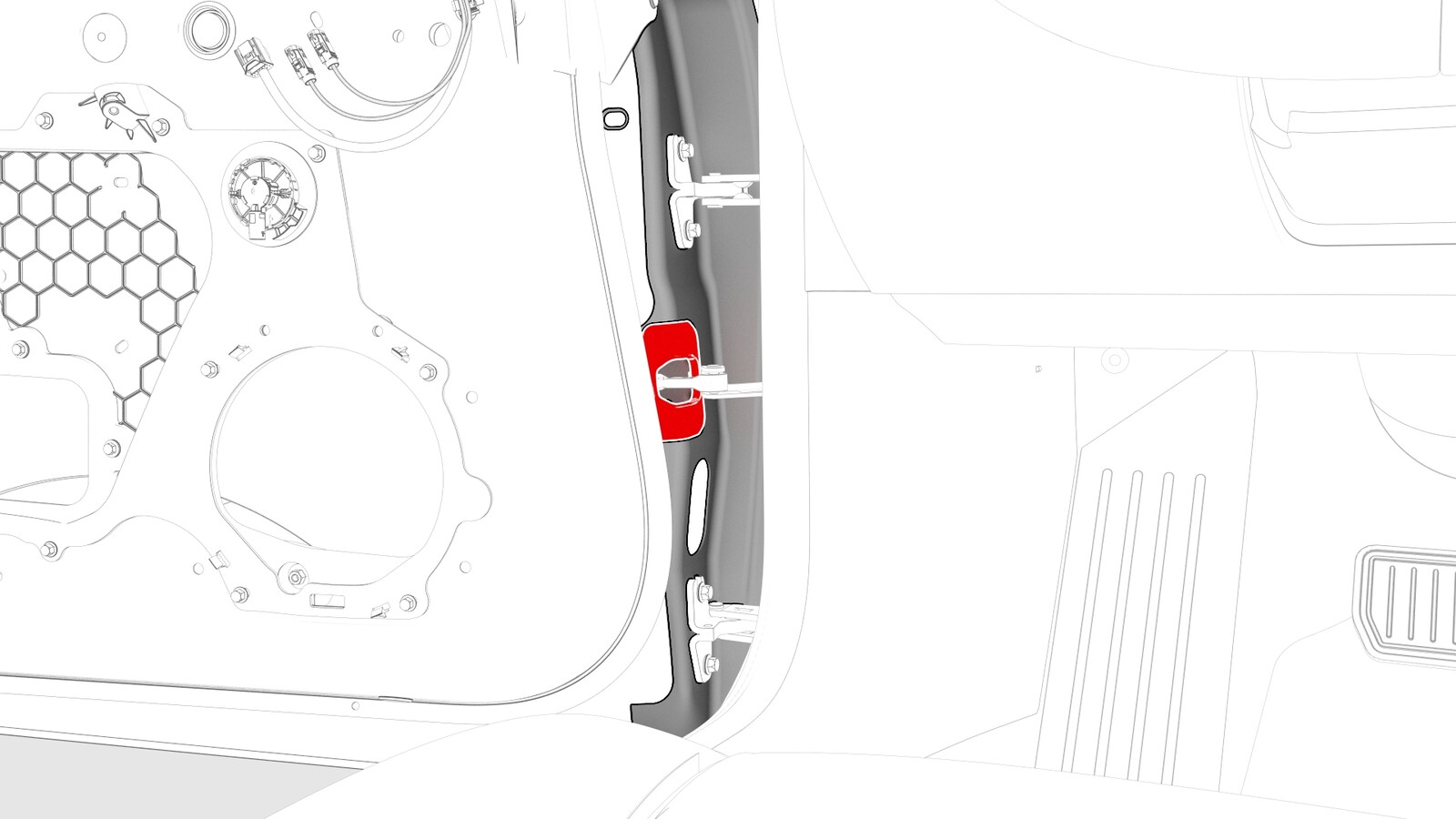 - Push the door wiring harness through the A-pillar bulkhead.