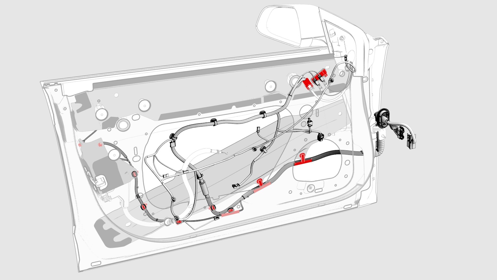 - Push the wiring harness through the door bulkhead, and then remove the harness from the door.