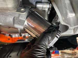- Remove the oil drain container from underneath the vehicle.