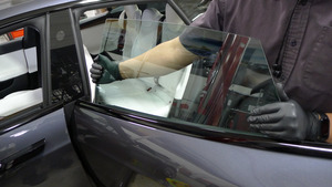 - Use the window switch special tool to raise the LH rear door glass partially for access to the foremost regulator isolator clamp.