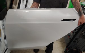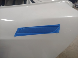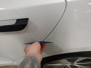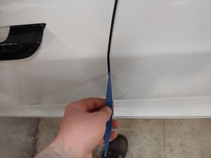 - Apply tape to the LH rear door exterior handle, and then carefully cut around the door handle to protect the handle and door.