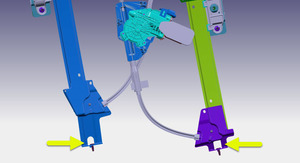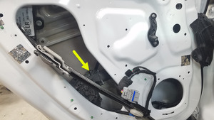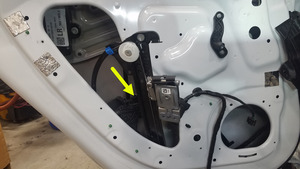 - Lower the LH rear door glass partially for access to foremost regulator isolator clamp.