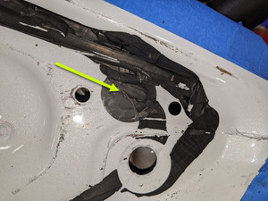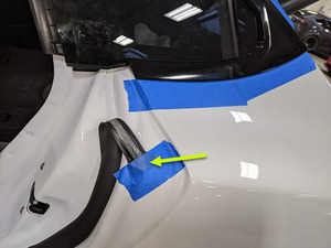 - Release the LH side rocker seal from below the LH rear quarter glass, and then tape the seal onto the body.