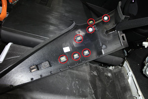 - Install the clips (x4) that attach the RH lower C-pillar trim to the RH mid C-pillar trim.