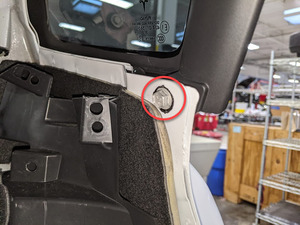 Install the bolts (x2) that attach the rear of the headliner to the body.
