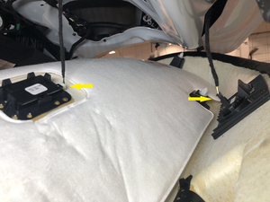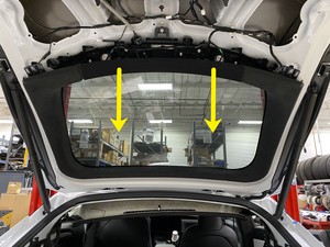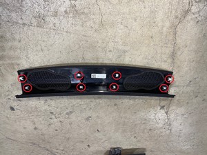 - Release the clips (x8) that attach the liftgate speaker grille to the liftgate, and then remove the grille from the vehicle.