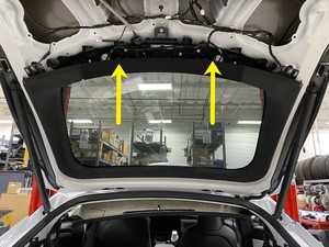 CAUTIONDo not let the lower liftgate trim hang or drop quickly for it will damage the electrical connector for the trunk close button.