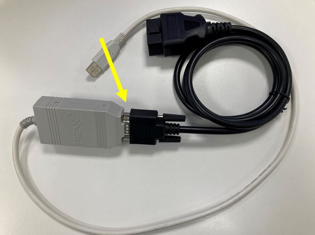 Connect the OBD2 diagnostics cable to the PCAN-USB adapter.