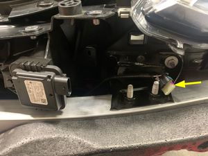 - Connect the front underhood storage harness connector, and then secure the connector lock.