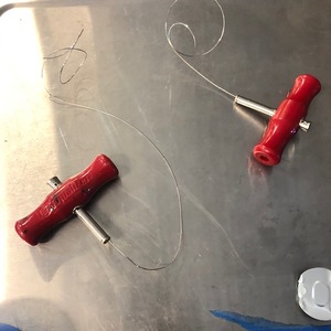 - Cut square wire and remove T-handles