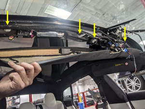 - Remove RH sun visor from headliner area