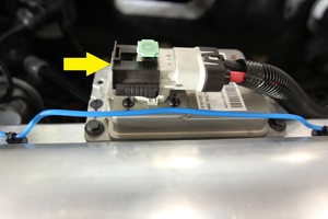 Note2x connectors Secure FRL first, Seat LV battery connection and push black connector lock inwards to secure, Engage green locking tab when fully seated
