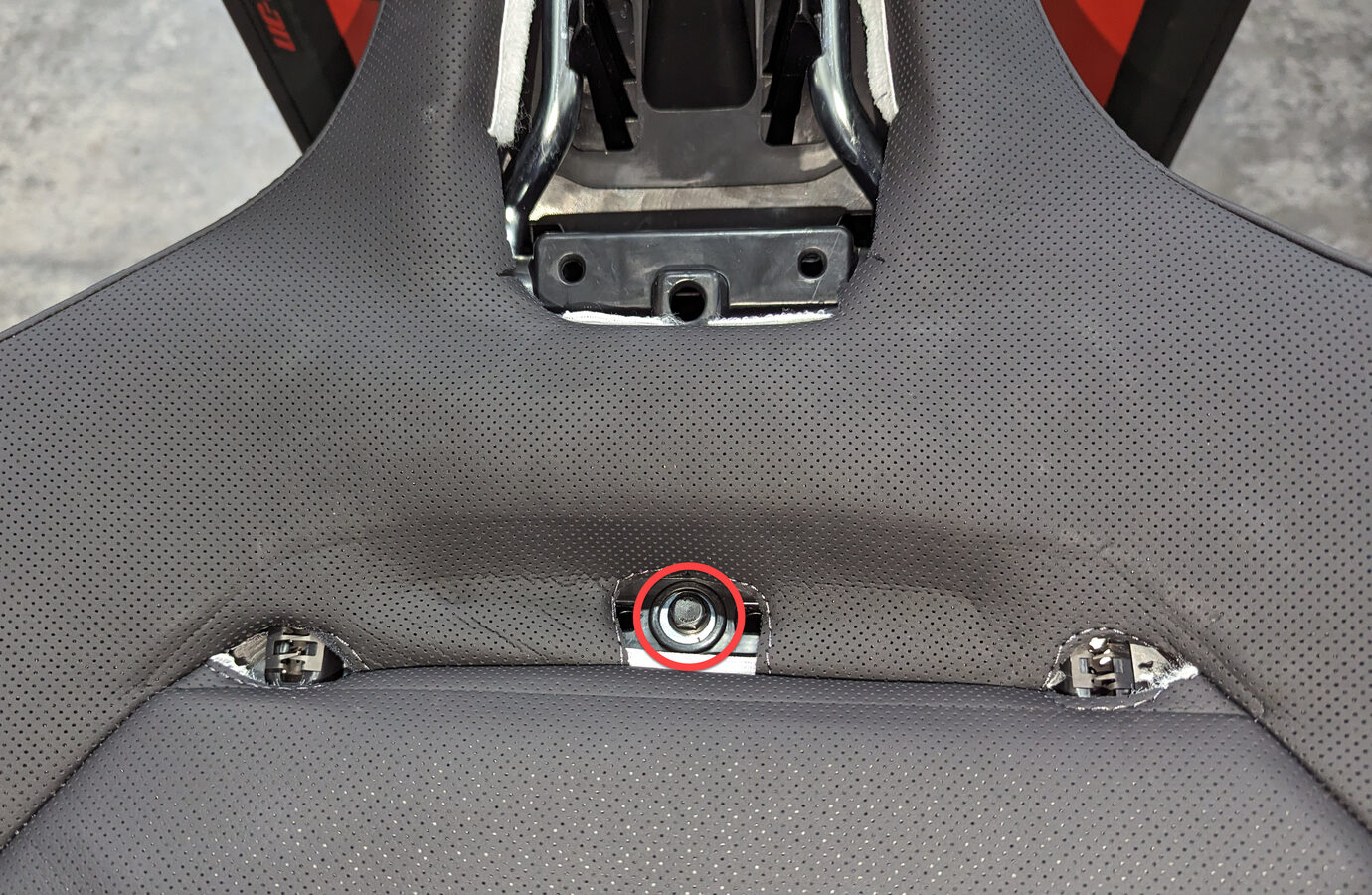 Install bolt securing LH front seatback panel to LH front seatback assembly