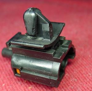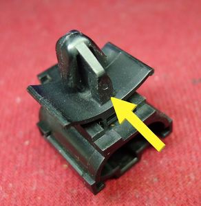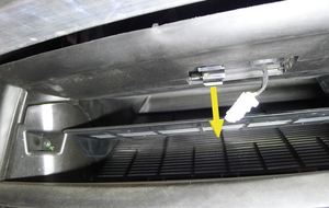 - Squeeze the retaining arms on the clip to release the ambient air temperature sensor, and then release the sensor downward to remove it from the active grill shutter assembly.