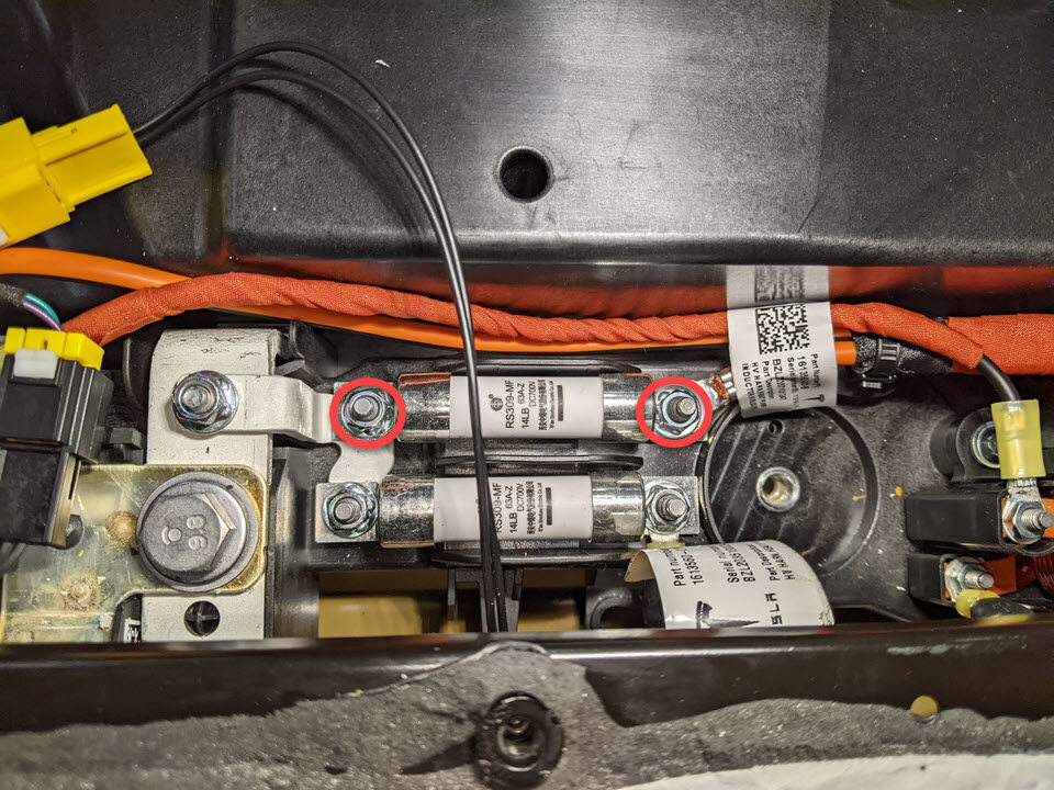 Remove the nuts (x2) that attach the power conversion system fuse to the mounting