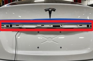NoteApply double sided tape, if needed.NotePeel off the red tape, as needed. - Install the liftgate applique. See Applique - Liftgate (Remove and Replace).