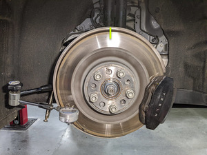 - Mark the top center of the rear rotor to identify the starting point.