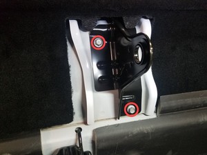 NoteLift the front of the rear trunk floor to access the top bolt and datum.