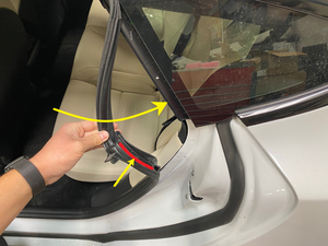 NoteMake sure the seal is seated properly along the bright molding, quarter glass, and interior trim.
