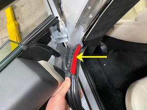- Remove the clip that attaches the LH primary rear side body seal to the B-Pillar.