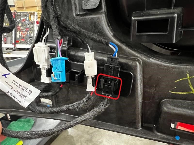 - Release the tabs (x3) that attach the center console lid switch harness to the center console assembly, and then remove the tape that attaches the switch harness to the harness bundle.