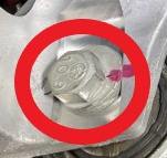 | Nut and bolt that attach the front air spring module to the front lower aft link |
