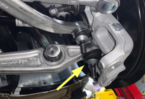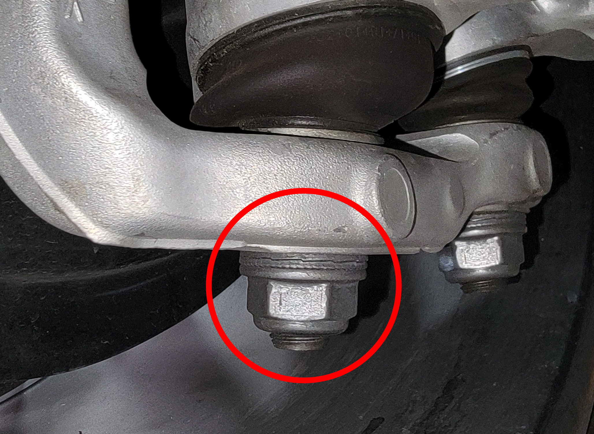 on the knuckle, and then install the Nord-Lock washers and new nut that attach the link