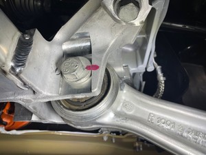 | Bolt and nut that attach the front lower aft link to the subframe |