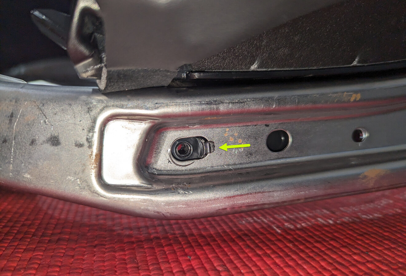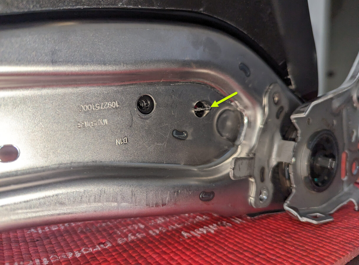 | Bolt that attaches the LH front seat back to the seat assembly |