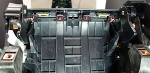 NoteRelease the datums and rotate bright up and out of the center console.NoteT10 (x4); torque 0.7 Nm. T20 (x2); torque 1 Nm.