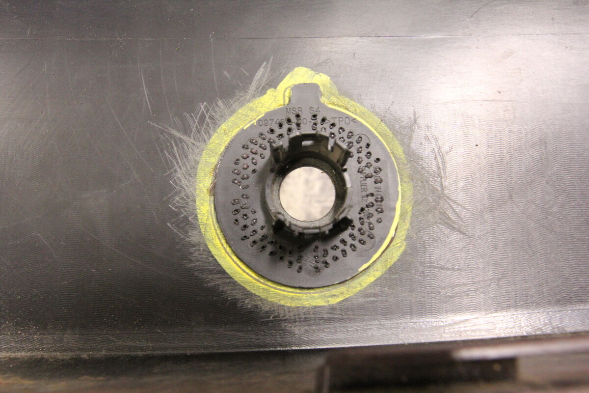 4. Test fit the new retainer with the parking distance sensor installed. Mark the position to aid with the installation.