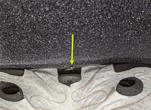 - Position the driver seat seat cushion trim onto the foam pad for hog ring installation.