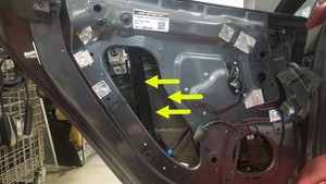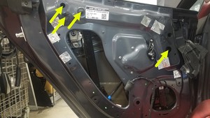 - Move the rear portion of the LH rear window regulator towards the front of the door cavity.