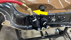 - Connect the supply compressed air line to the pressure test fixture.