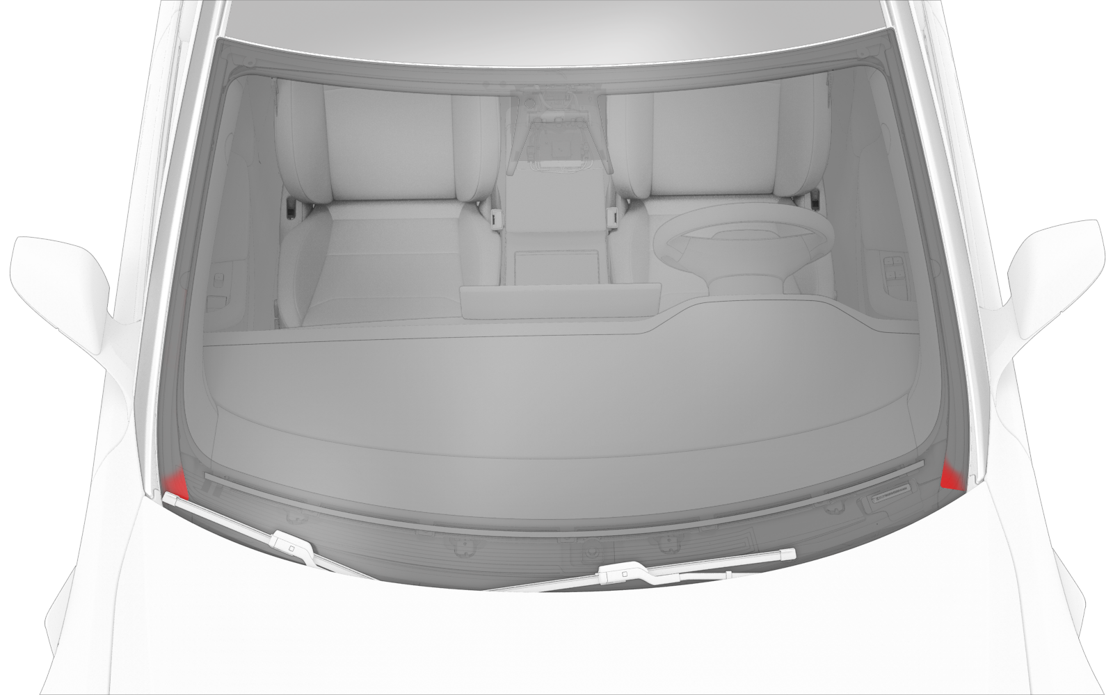 - Remove the tape from the exterior of the LH and RH A-pillars.
