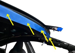 - Apply masking tape to the exterior of the LH and RH A-pillars to protect the paint from damage.