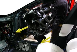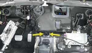 Release upper steering column bracket IP carrier bolts at bulkhead
