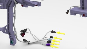 Note2x connectors Secure FRL first, Seat LV battery connection and push black connector lock inwards to secure, Engage green locking tab when fully seated