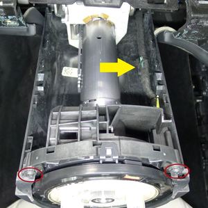 Note2x screws, T20, 1.5 Nm, 1x clip, 1x datum, Slide lower shroud rearward to release datum