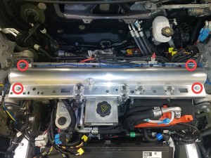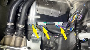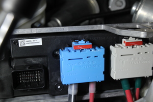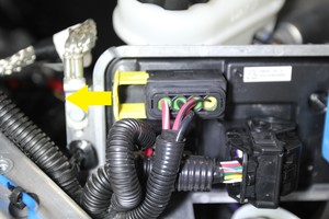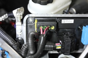Note2x connectors Secure FRL first, Seat LV battery connection and push black connector lock inwards to secure, Engage green locking tab when fully seated