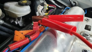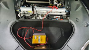 - Remove the red positive clamp of the LV maintainer from the jump post.
